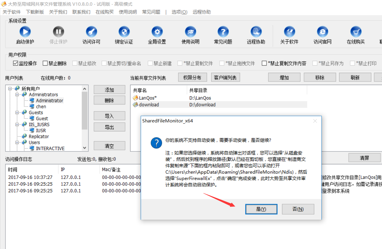 大势至共享文件夹监控软件、服务器共享文件设置软件、服务器文件夹访问权限设置软件底层驱动安装的方法2017-09-16 / 4857次阅读 -