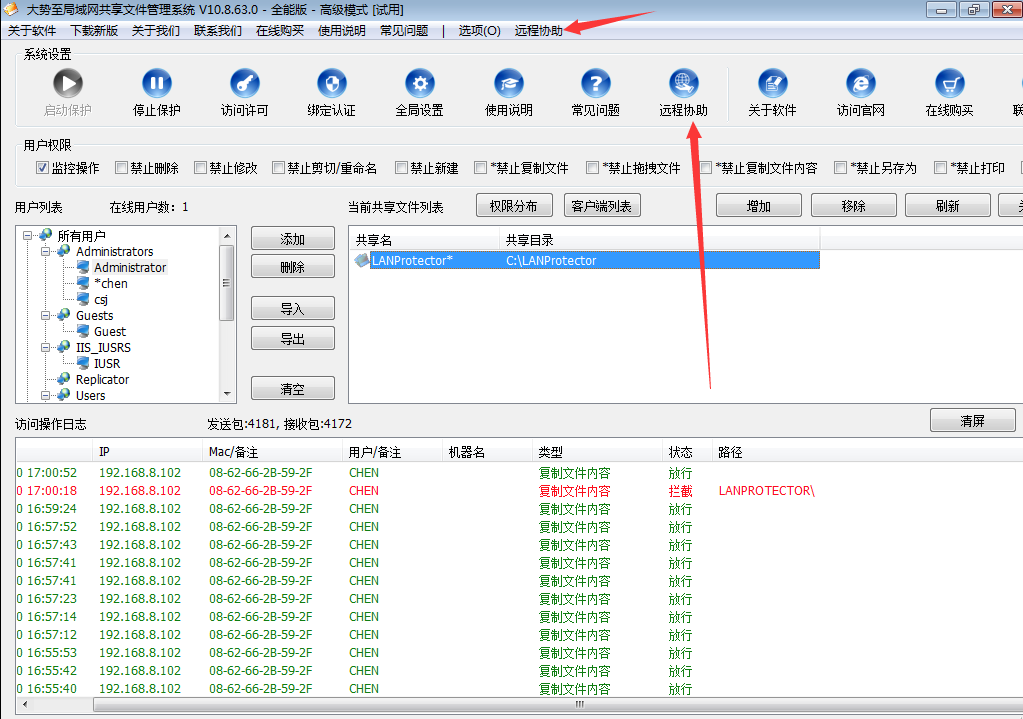 大势至共享文件夹监控软件、服务器共享权限管理软件之“访问许可”功能设置说明