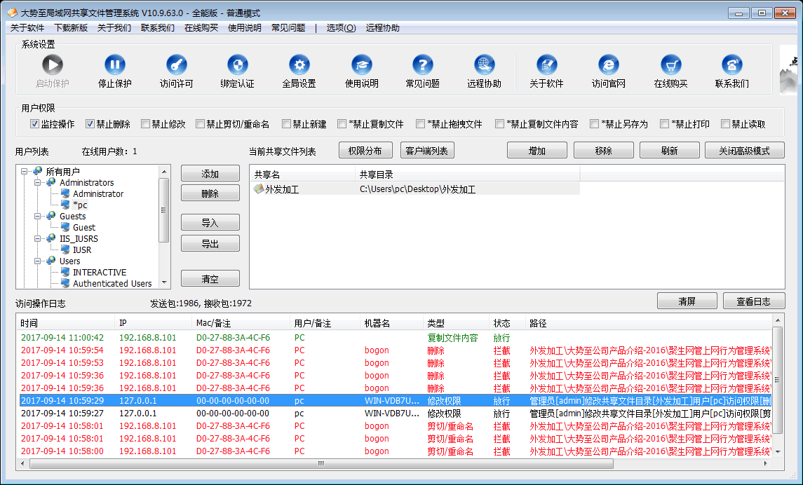 大势至共享文件权限管理软件、局域网共享文件管理软件操作设置文档汇总FAQ2017-08-30 / 7432次阅读 -
