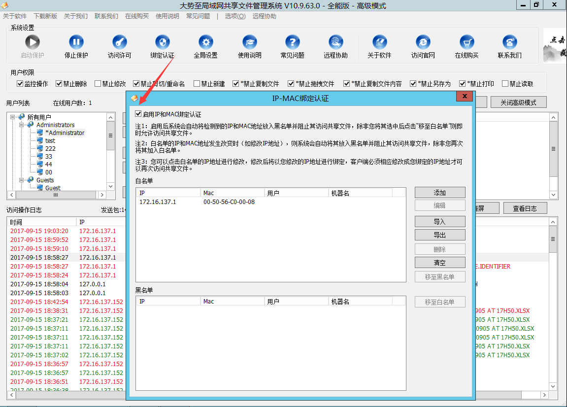大势至局域网共享设置软件之局域网ip和mac绑定、ip和mac绑定认证的设置方法